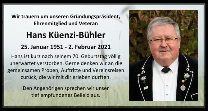 Am diesjährigen Konzert gibt es einen Film zum Lied "Am Aarelouf" von Hannes Fuhrer. Der Komponist führte uns zu einigen Orten, an welchen das Lied entstand. z.B. "Bättlerchuchi", Farnern und das "Eggebänkli" in Wangenried, mit interessanten Ausführungen. Herzlichen Dank Hannnes!